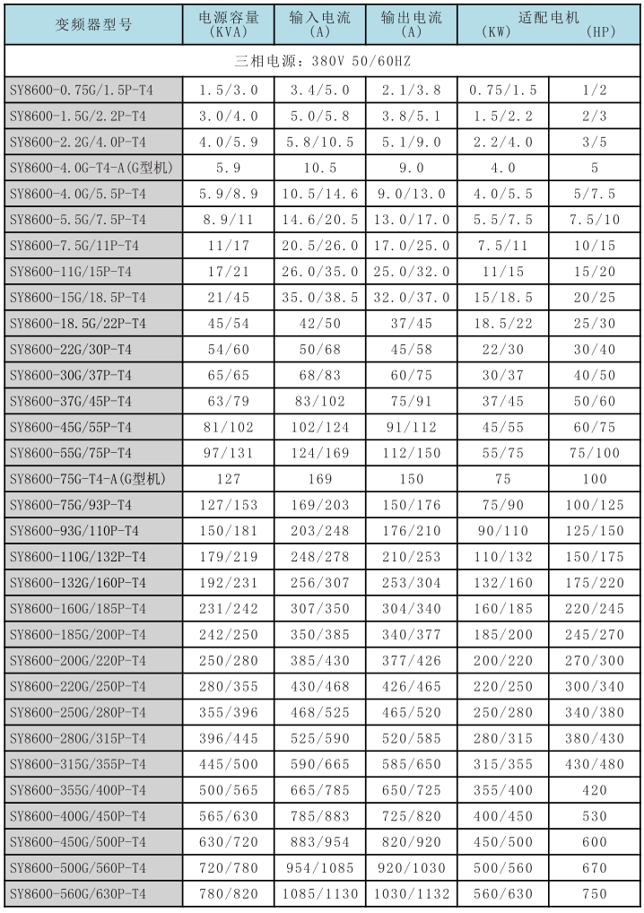 SY8600系列高性能矢量变频器: |